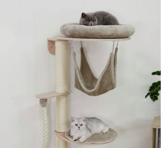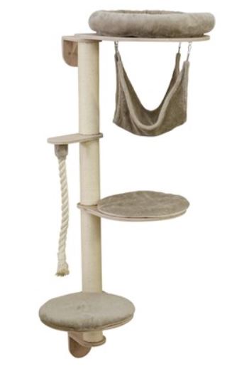Om man vill ha en fin hängmatta till sin katt kan man passa på att titta på någon av de många fina vägghängda klösmöblerna som finns för katter. Genom att köpa en hel liten möbler så får man flera funktioner i ett. Detta är ett väldigt fint vägghängt klösträd av hög kvalitet. Detta klösträd har en skön hängmatta längst upp som din katt kan både vila i och spana ifrån. Själva hängmattan är väldigt enkel, men samtidigt skön. Eftersom den är lite knepig att komma åt gör den också att katten måste anstränga sig lite för att komma dit, något som är bra för dess hälsa. Förutom hängmattan så har klösträdet även flera plattformar samt även ett roligt rep att leka med.