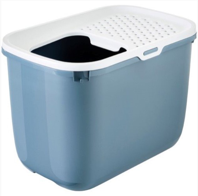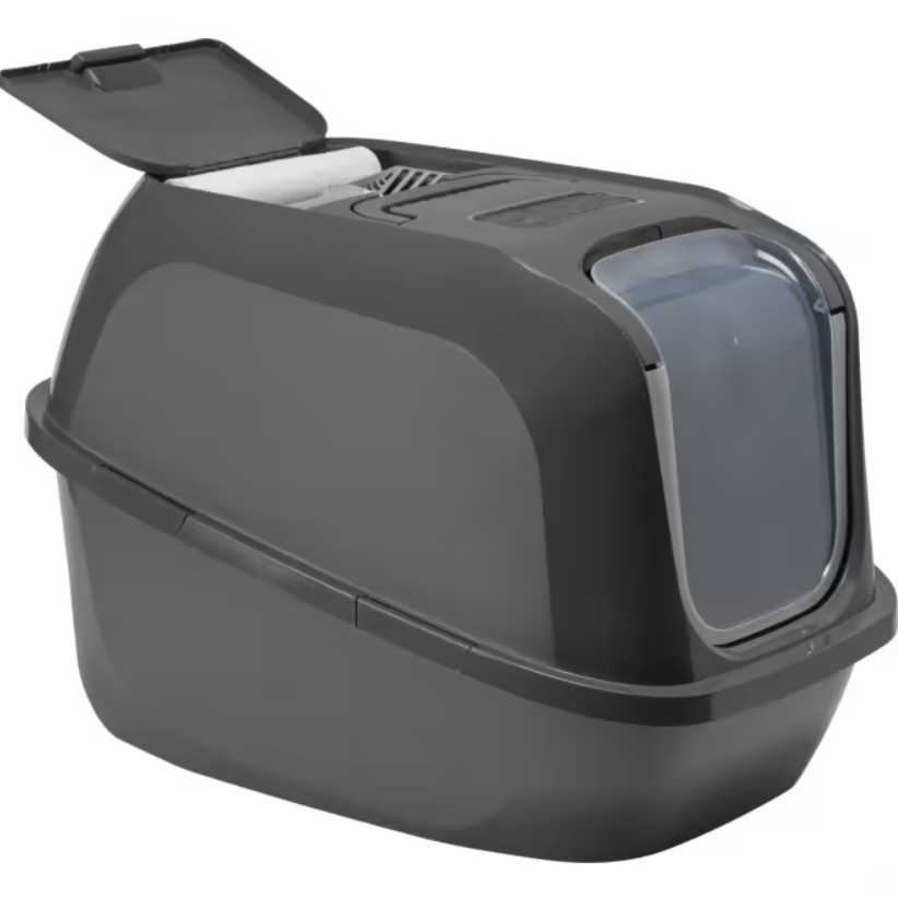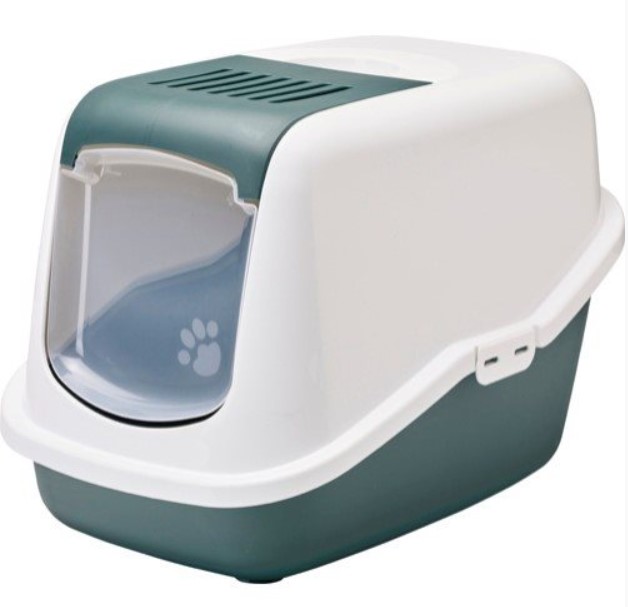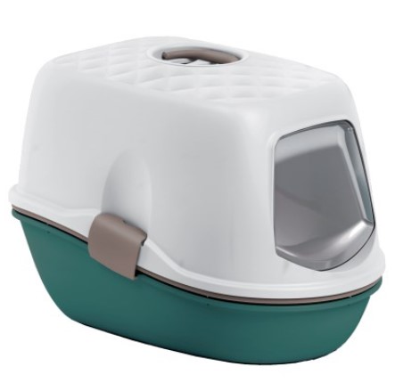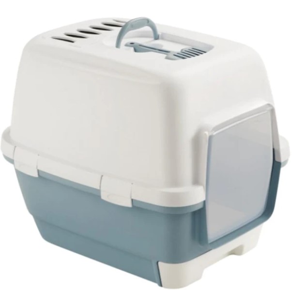 Denna kattlåda är även perfekt för de katter som står och kissar eller som kissar bakåt. Eftersom katten är omgiven av lådan så blir det inget skvättande utanför kattlådan. Detta är en relativt stor kattlåda som passar för alla raser. Den stora storleken bidrar också till att göra katten bekväm med att ta sig in via hålet i taket. Produkten finns i flera olika färger.