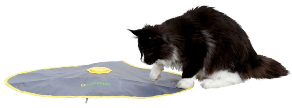 Detta är en perfekt leksak även för svårflörtade katter. Kattleksak Catch läggs på golvet och har en motor under skynket som gör att något tycks röra sig därunder. Den rörliga delen väcker kattens leklust och jaktinstinkt på ett mycket påtagligt sätt. Även katter som normalt sett är stillsamma blir väldigt engagerade när man sätter på denna leksak! Leksaken är perfekt för dig som vill aktivera katten, eftersom han eller hon kommer få en hel del motion under leken. Leksaken är även bra för att mätta redan aktiva katter på bus, och på så sätt få lite lugn och ro när de väl lekt sig trötta.