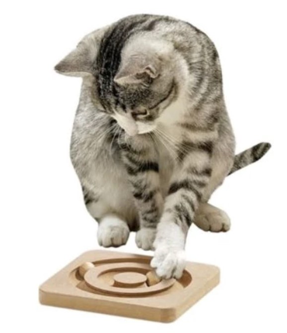 Detta är en mycket fin leksak av trä för katten. Produkten tränar hjärna och fysik på en och samma gång. De små bollarna rullar enkelt i sina respektive spår, något som tycks fascinera katten oerhört. För att ge ytterligare motivation till leken kan man även lägga små godisbitar i spåren, något som så klart väcker kattens intresse ytterligare.