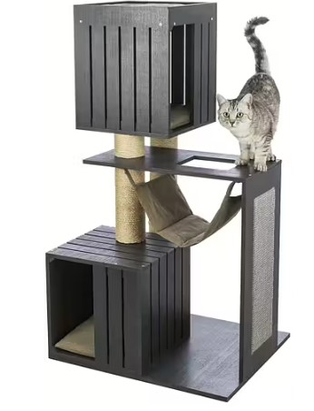 Tack vare att möbeln är stor och rymlig så kan katten klättra på den och växla mellan de olika sitt- och liggplatserna. Allra längst upp får katten en bra överblick över rummet. Vi gillar verkligen även den fina och sköna hängmattan som kommer med produkten. På liggplatserna finns dynor av hög kvalitet. Dynorna går att vända och även att tvätta i maskin när de blivit smutsiga. Detta är en värdig testvinnare och ett riktigt bra köp för den som vill ge det bästa till katten.