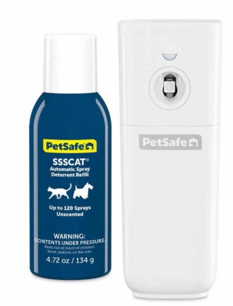 Detta är en riktigt fiffig produkt för att vänja av katten från att vara på ställen där den inte ska vara. Detta är en helt automatisk produkt med rörelsesensor, så du behöver inte själv vakta katten varje minut. Genom att placera denna produkt på exempelvis diskbänken eller köksbordet så får du en automatisk kattvakt. När katten kommer nära sprayflaskan så sprayar den en ofarlig lösning på katten. Kissen kommer tycka det är obehagligt att bli sprayad och hoppa ner på golvet igen. Efter några gånger har katten förhoppningsvis börjat förknippa området med den ofrivillig duschen och kommer därför undvika att bege sig dit i framtiden. En riktigt smart produkt som gör livet som kattägare enklare!